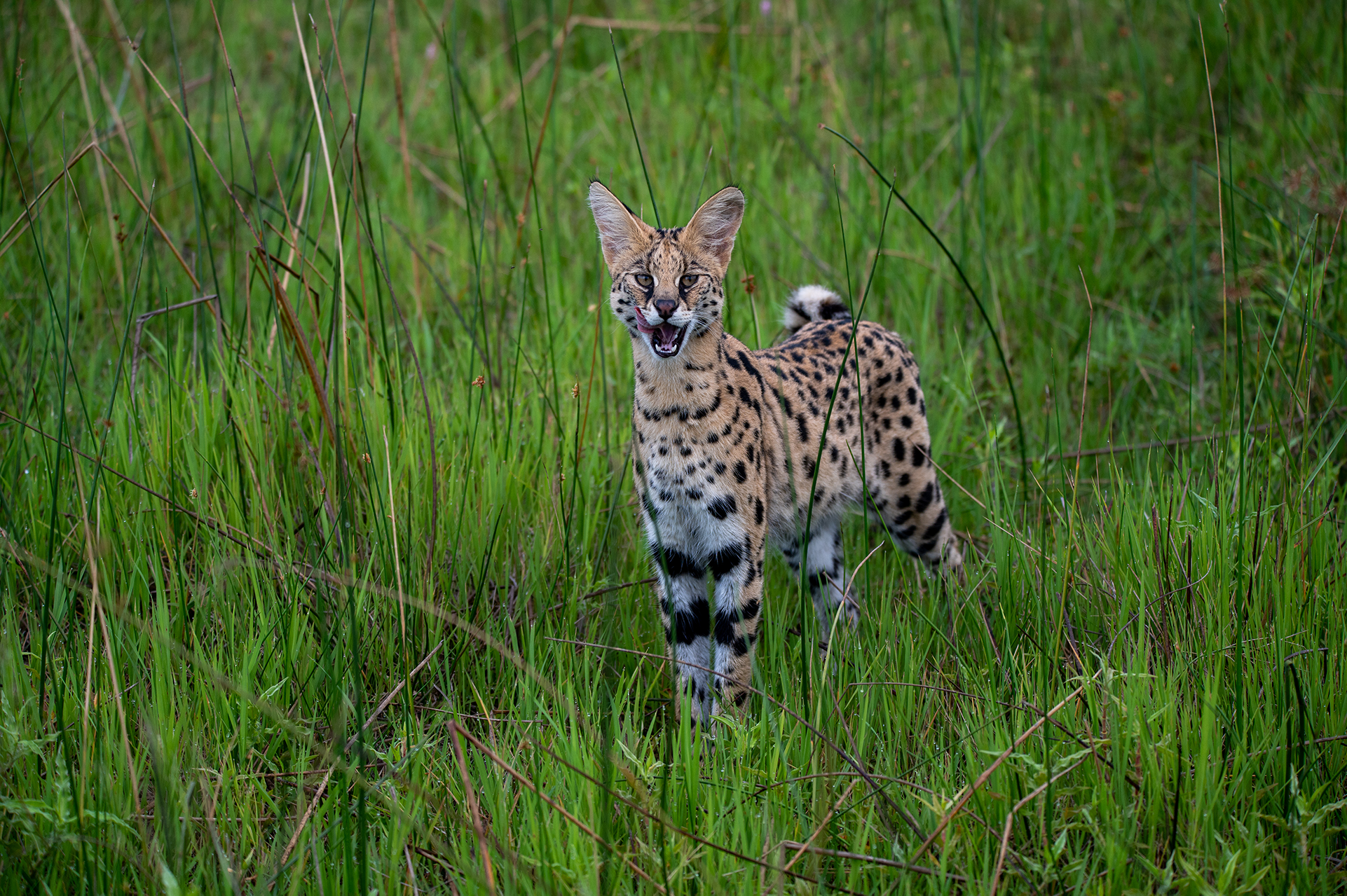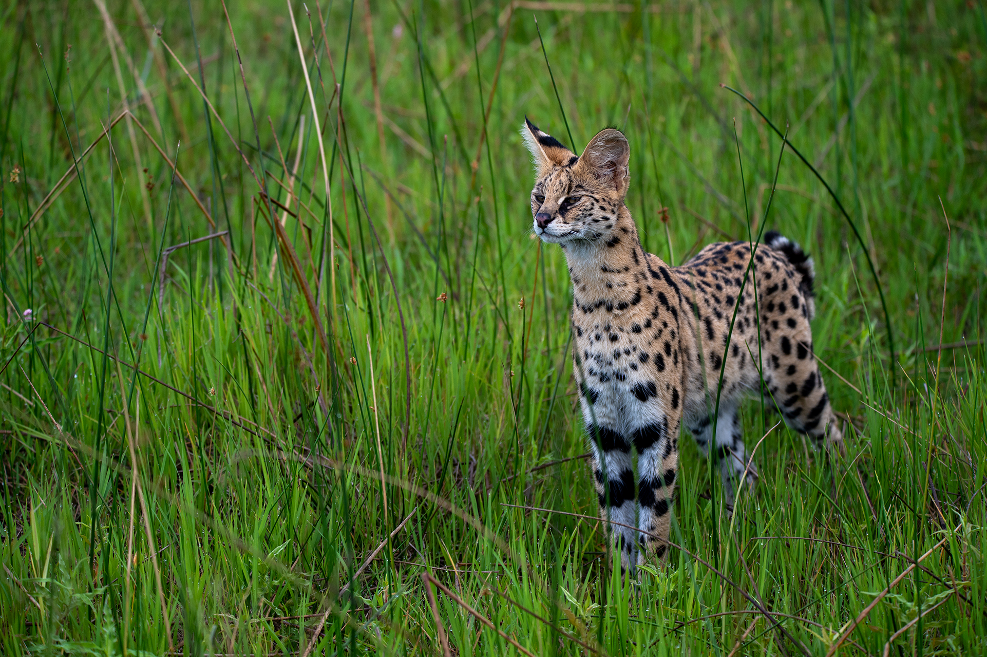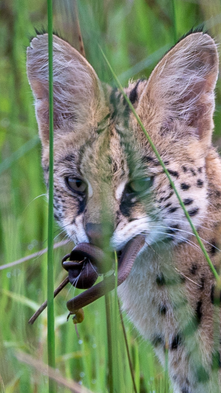 Our guide Mott was so fortunate to come across a young serval in the midst of a hunt. He knew well enough to wait patiently, and was rewarded with a thrilling sighting of the serval catching a water snake. Serval are known to be very skittish but amazingly for the guests, this serval stayed a while and posed beautifully for some photos. This was truly a once-in-a-lifetime sighting.
