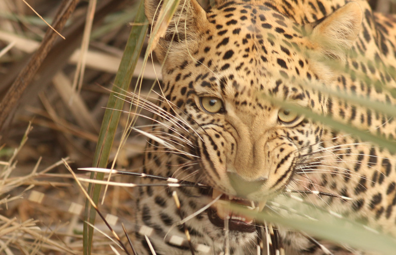 Other highlights included a complete, successful cheetah hunt – from stalk, to sprint, to strangulation of the impala about 20m from the vehicle, followed by the exhausted female calling in her three cubs to share her bounty, a day time sighting of leopard on a fresh porcupine kill, three days spent with a magnificent male leopard 400m from camp on his large warthog kill, mating lions 200m from our bush dinner, yet another cheetah with five less-than-one month old cubs, a pair of honey badgers raiding a bee hive, the coalition of three male lions wading chest deep across the channel adjacent to the camp, guests witnessing ostrich chicks hatching from their eggs, regular nocturnal sightings of Aardwolf – the list just goes on and on!