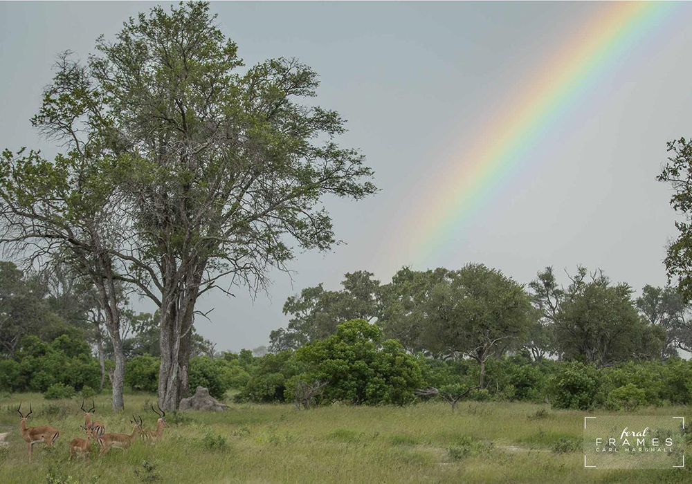 February at Machaba Safaris has brought near record rainfall this season, saturating the area, causing the river Khwai to rise substantially and the plant life to explode into near jungle status. With the rain clouds also brings ever dramatic sunrises, sunsets, and even the odd rainbow.