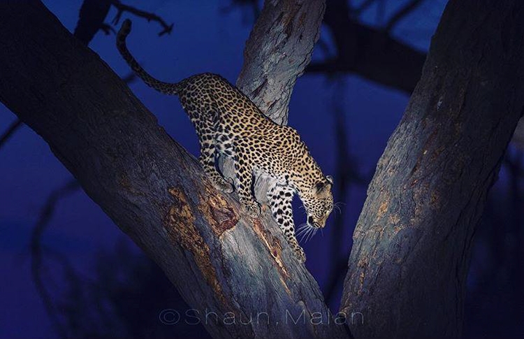 Leopards never disappoint in Khwai! A young male leopard munching on an impala, Mmatsebe and her tiny cub, and the tip of a tail disappearing into the thickets.