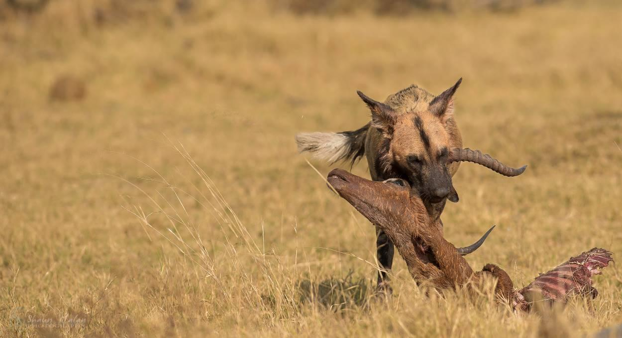 Wild dogs have been running through camp as part of their hunting grounds, as their den site is very near. They killed an impala right in front of room 4 & room 6, just re-iterating the old phrase: “Don’t leave camp, you might just miss out!” They are regularly patrolling the open floodplains near camp in search of food, while keeping an eye out for danger.