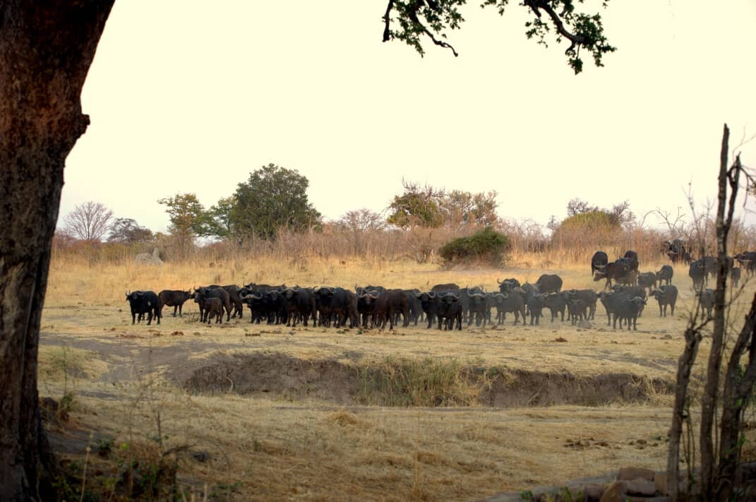 Nothing gets the blood pumping like the sound of lions roaring in the distance just as you are about to leave camp for your morning drive. Just past the dam, we saw a herd of over one hundred buffalo and we had just slowed down to take in this magnificent sight when, lo-and-behold, two lionesses snuck up to them.