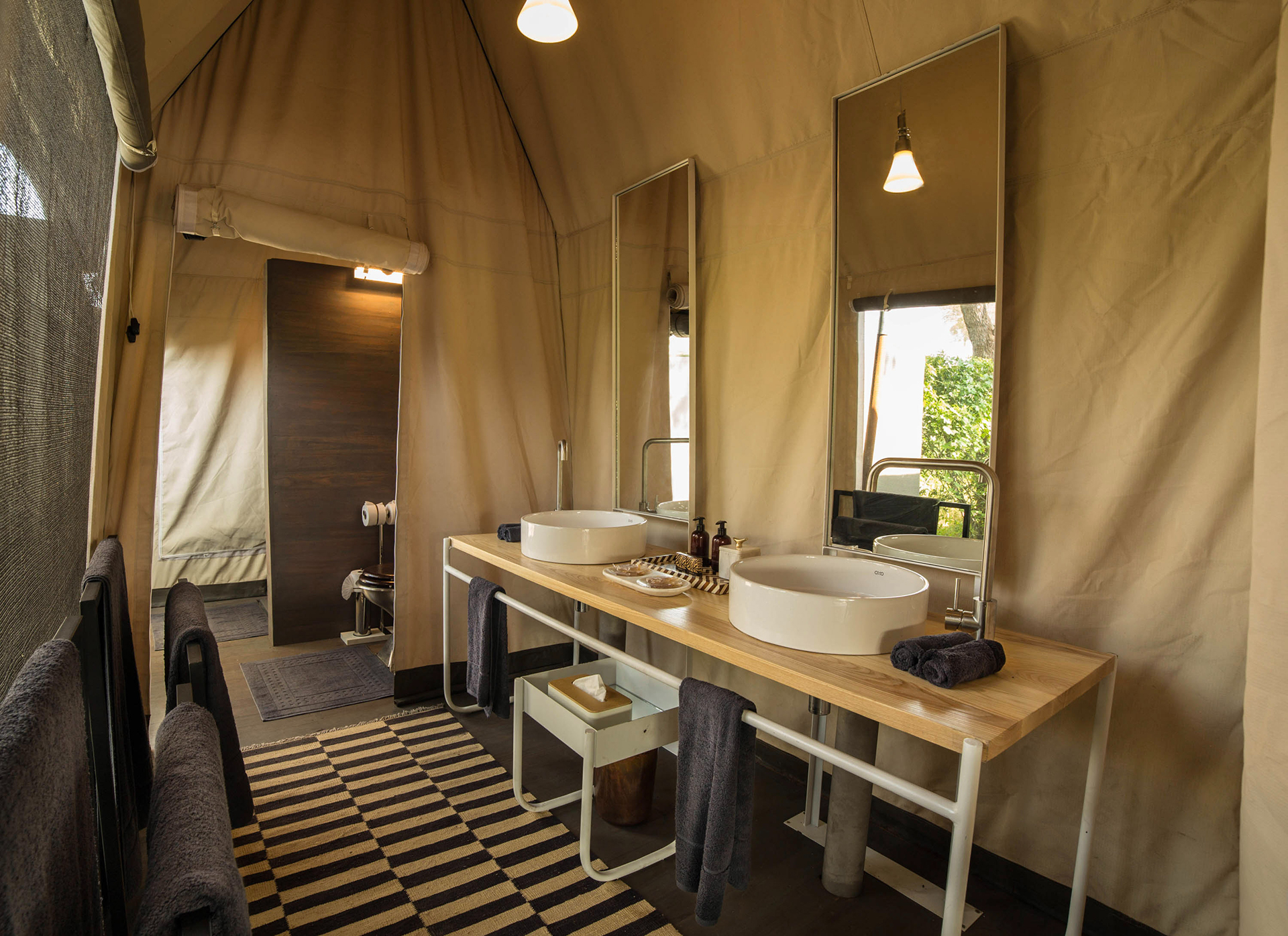 The oversized tented deck area forms the social hub of our camps. You can meet other safari goers at the bar, relax in the lounges or gather around the large fire pits to swap stories, fuelling the feeling of being on an authentic African safari in the bush.