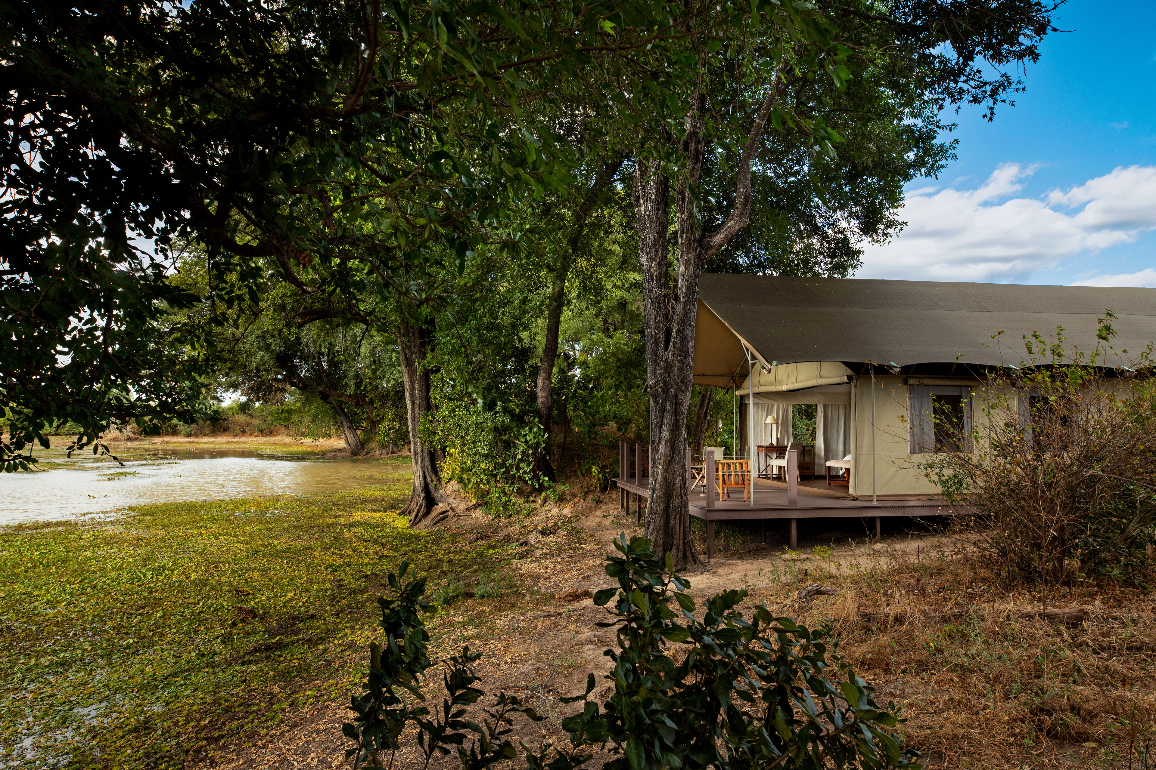 Ingwe Pan Camp nestles alongside a large secluded pan in the pristine Mana Pools National Park, which forms part of a UNESCO World Heritage Site. The camp is a 30-minute drive from the famed Mana flood plain and Zambezi River and is known for its excellent walking safaris.